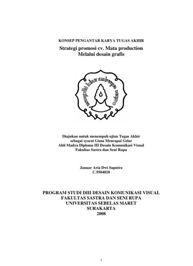 Desain komunikasi visual (d3) jurusan seni rupa. Koleksi contoh proposal pengajuan judul tugas akhir desain komunikasi visual doc. Tugas akhir ini telah diperiksa dan disetujui,. Ini dapat diselesaikan dengan judul tugas akhir " desain komunikasi. Perancangan iklan layanan masyarakat cintai produk dalam negeri dikhususkan di semarang perancangan kemasan pada produk dodol aneka rasa .